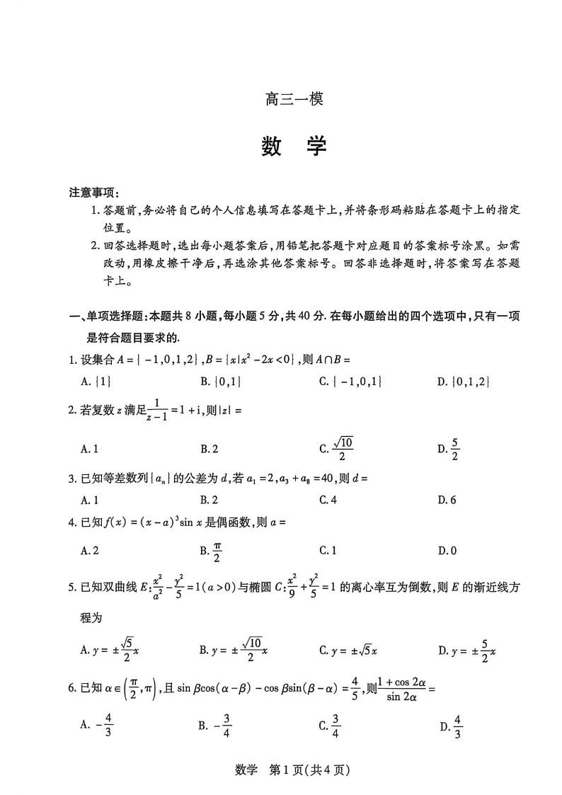 高三数学--河南新乡鹤壁安阳焦作2026届高三一模