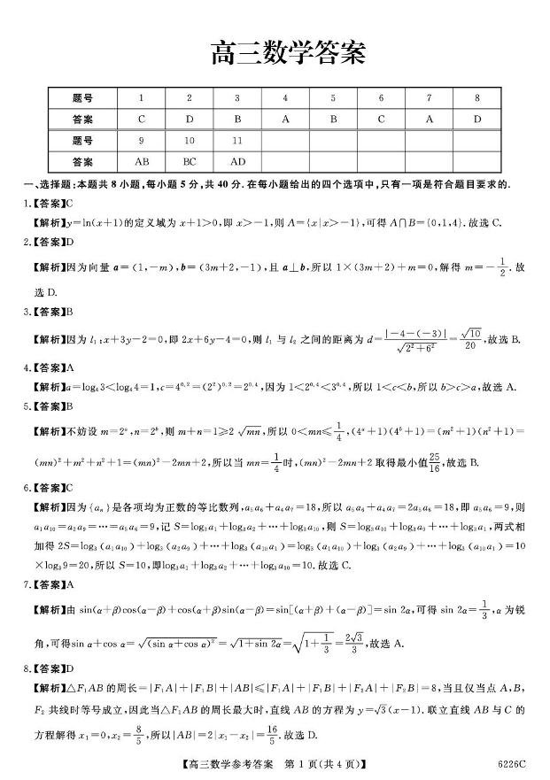 高三数学答案--吉林省白山市2026届高三上学期一模考试