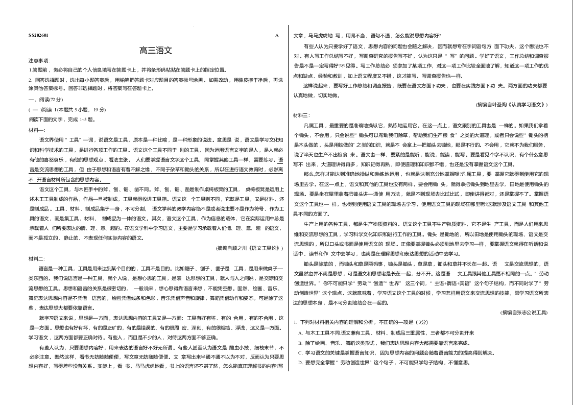 高三语文--陕西山西宁夏青海2026届高三学期1月四省联考