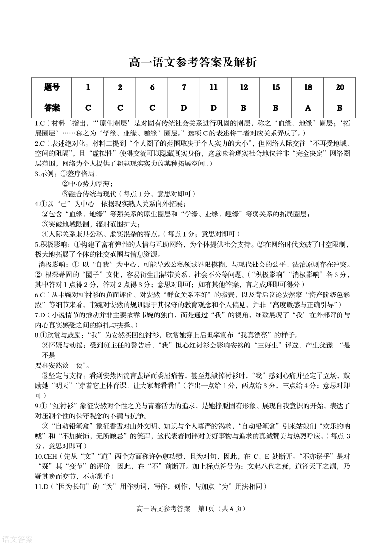 高一语文答案--安徽省皖江名校联盟2025-2026学年高一上学期12月联考