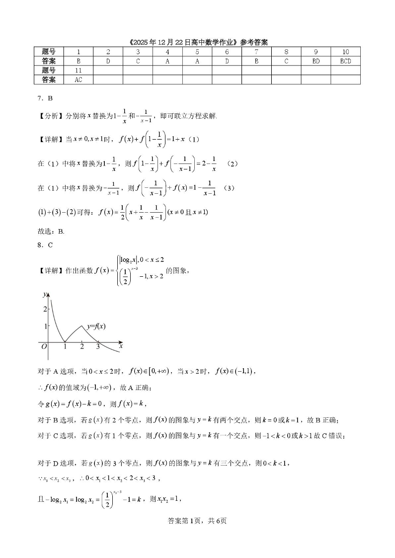 高一数学答案--四川省南充市仪陇中学2025-2026学年高一上学期12月月考