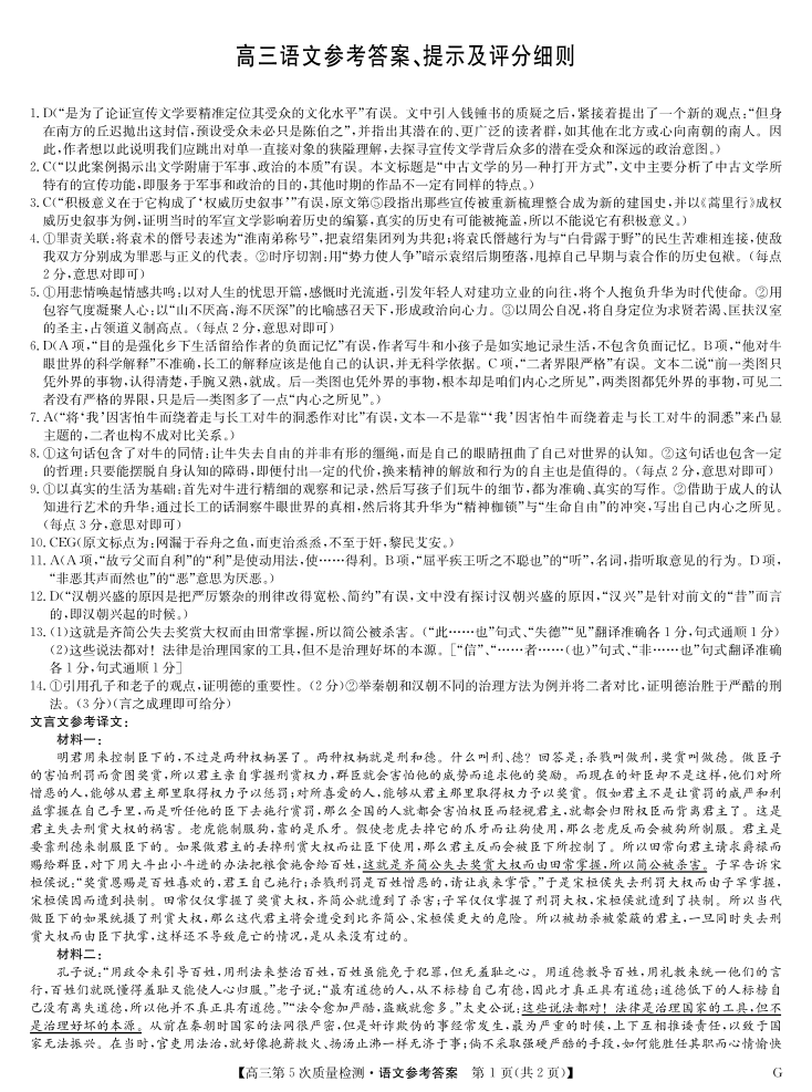 高三语文答案--安徽省九师联盟2026届高三(1月)第五次质量检测