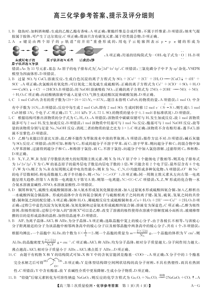 高三化学答案--安徽省九师联盟2026届高三(1月)第五次质量检测