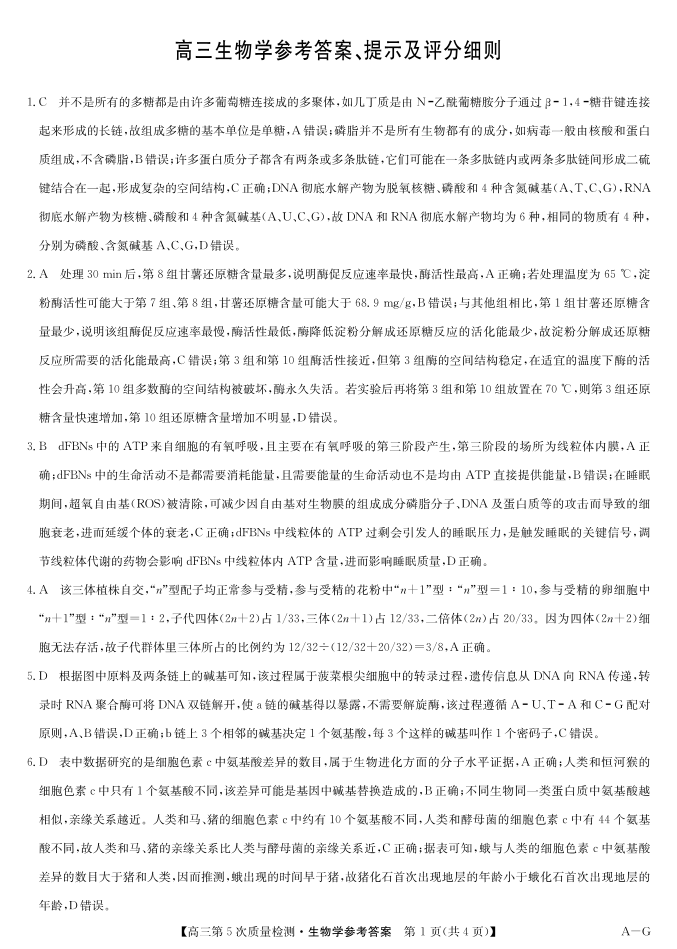 高三生物答案--安徽省九师联盟2026届高三(1月)第五次质量检测