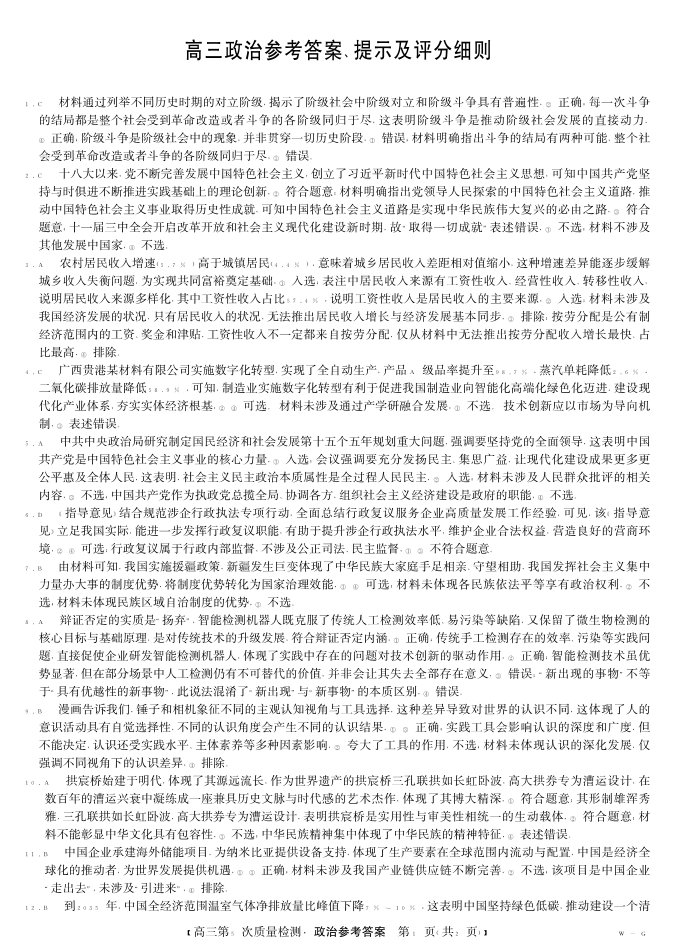 高三政治答案--安徽省九师联盟2026届高三(1月)第五次质量检测