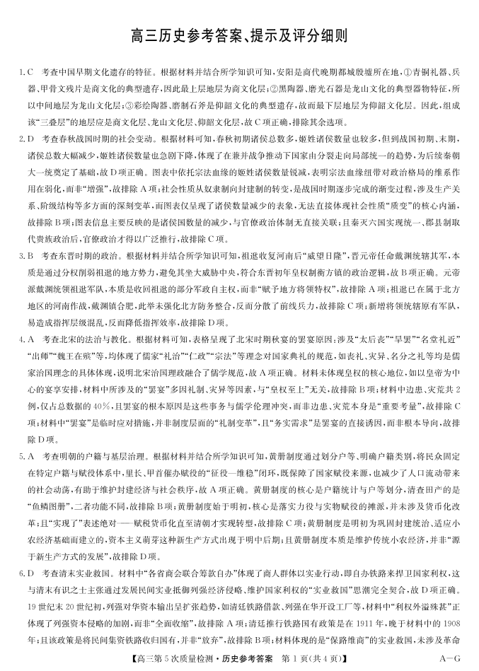 高三历史答案--安徽省九师联盟2026届高三(1月)第五次质量检测