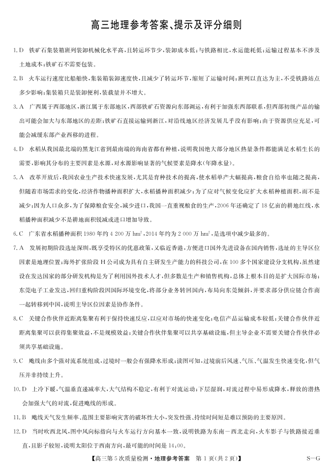 高三地理答案--安徽省九师联盟2026届高三(1月)第五次质量检测
