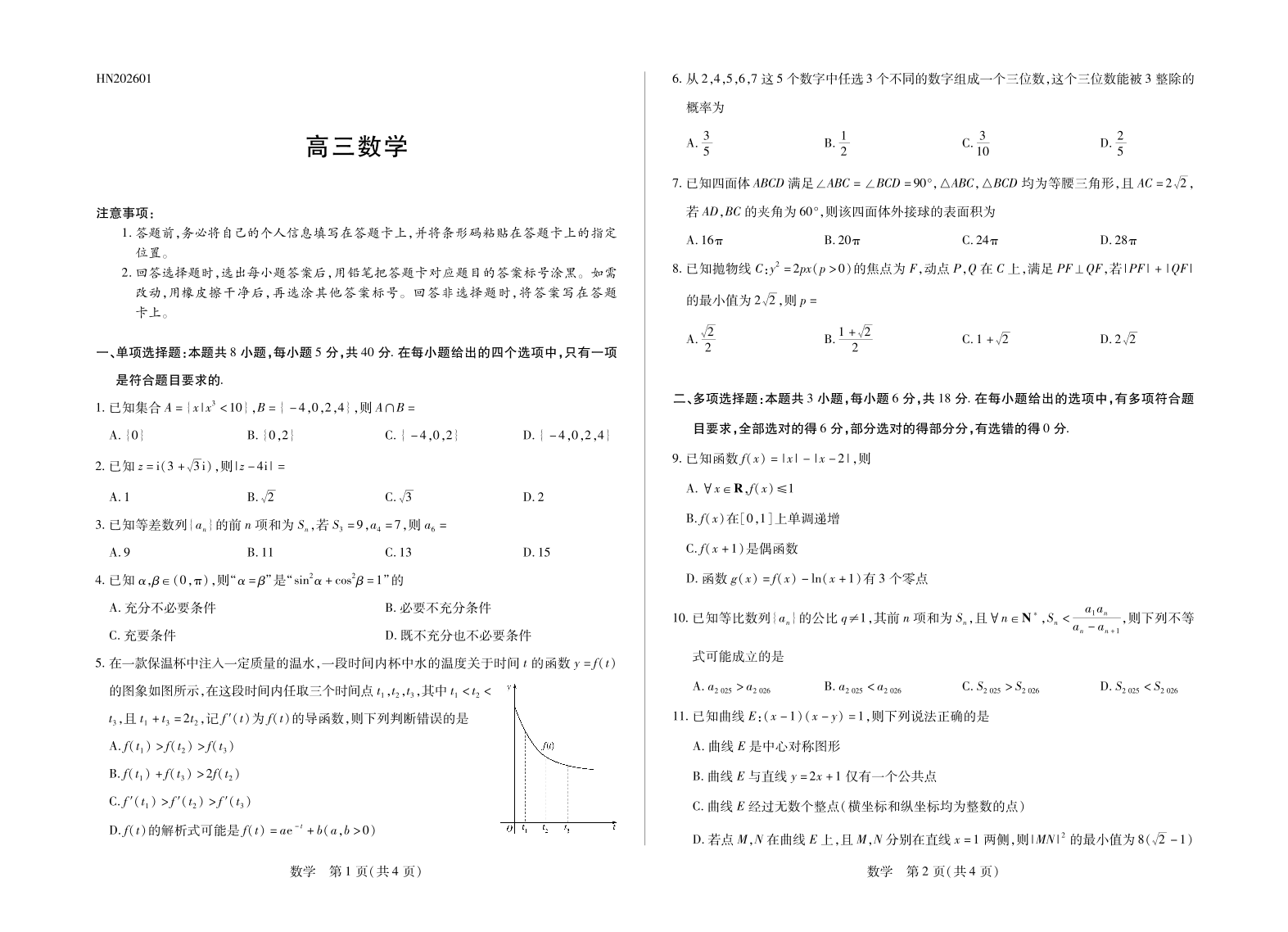 高三数学--河南省多校小高考2026届高三上学期素质评价(三)