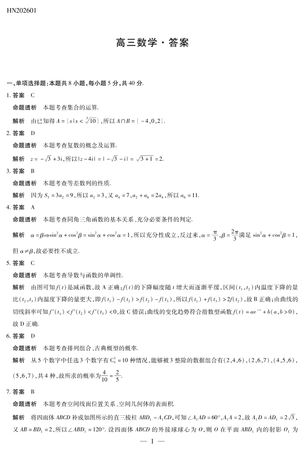 高三数学答案--河南省多校小高考2026届高三上学期素质评价(三)
