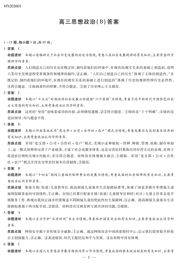 高三政治B答案--河南省多校小高考2026届高三上学期素质评价(三)