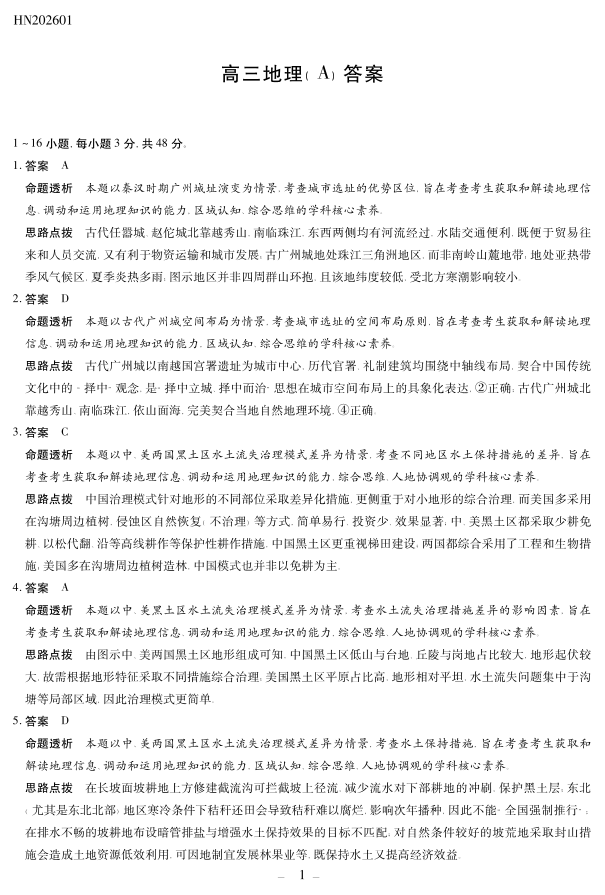 高三地理A答案--河南省多校小高考2026届高三上学期素质评价(三)