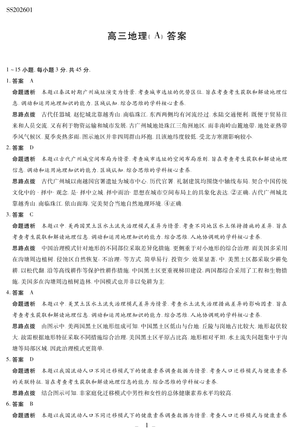 高三地理答案--陕西山西宁夏青海2026届高三学期1月四省联考