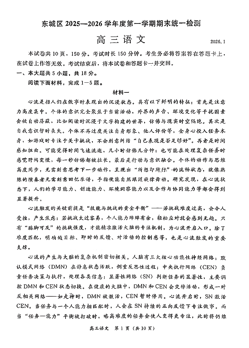 高三语文+答案--北京市东城区2026届高三上学期1月期末考试