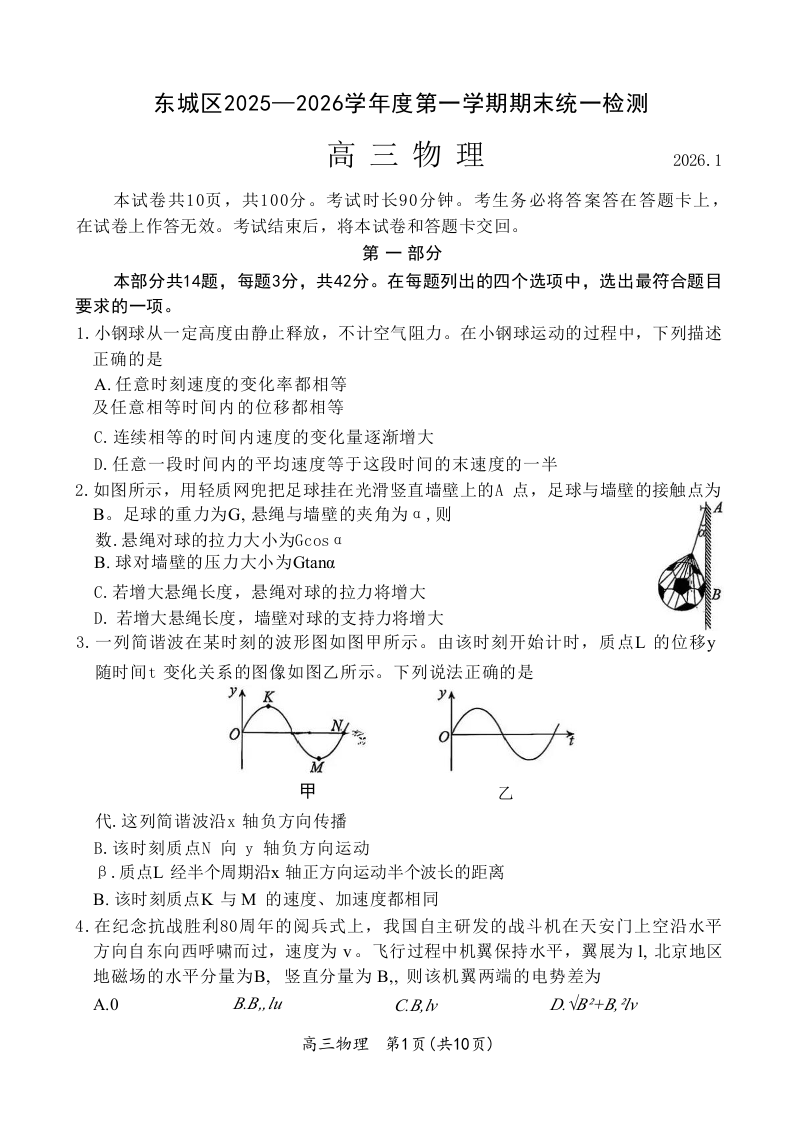 高三物理+答案--北京市东城区2026届高三上学期1月期末考试