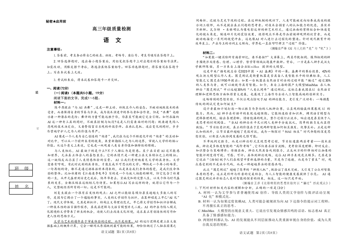 高三语文+答案--河南省青桐鸣大联考2026届高三上学期1月月考