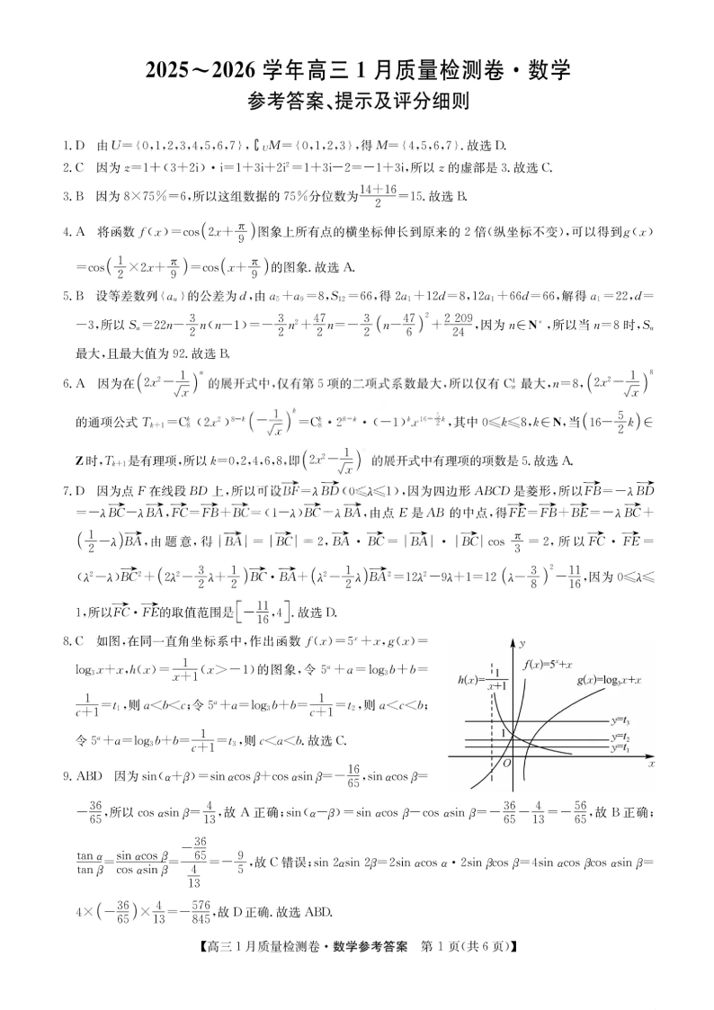 高三数学答案--山西三晋卓越联盟2026届高三1月质量检测