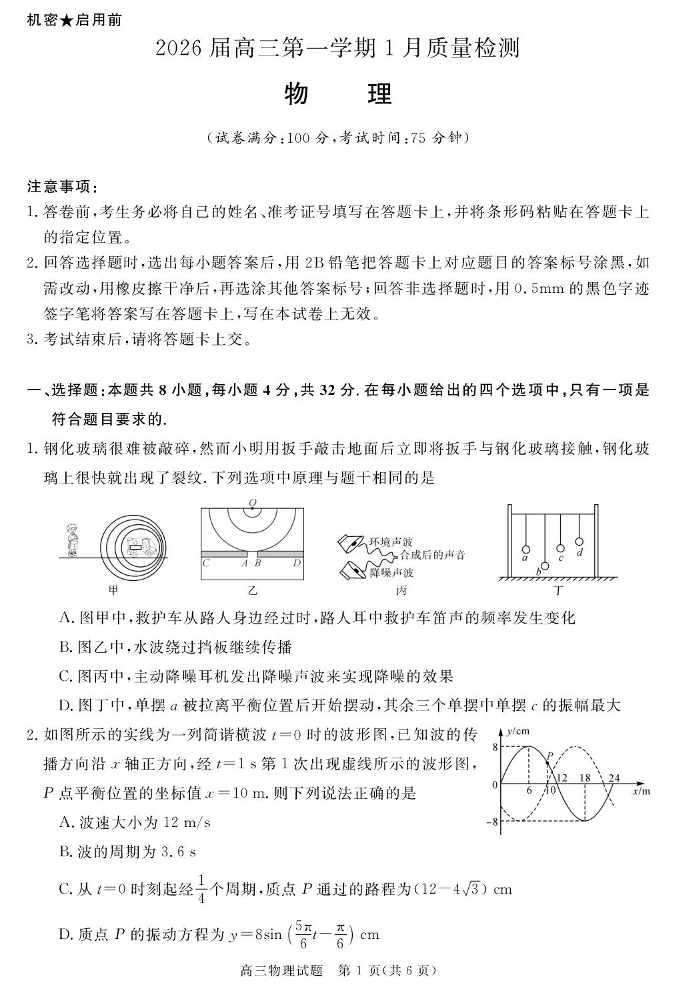 高三物理--安徽省华师联盟2026届高三上学期1月质量检测