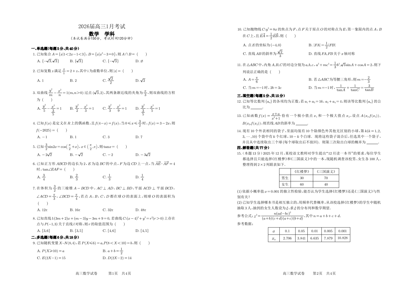 高三数学--安徽省合肥一中2026届高三上学期1月期末考试