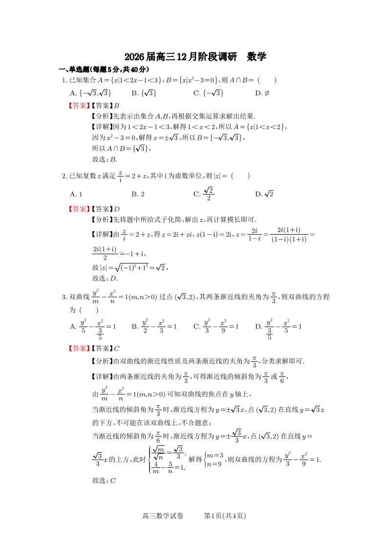 高三数学答案--安徽省合肥一中2026届高三上学期1月期末考试