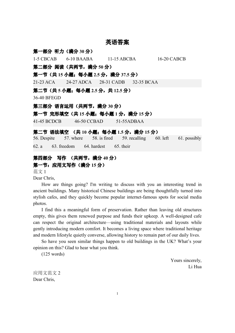 高三英语答案--安徽省合肥一中2026届高三上学期1月期末考试