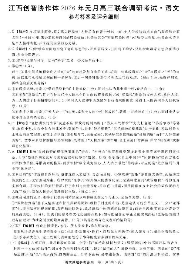 高三语文答案--江西创智协作体2026高三元月联合调研考试