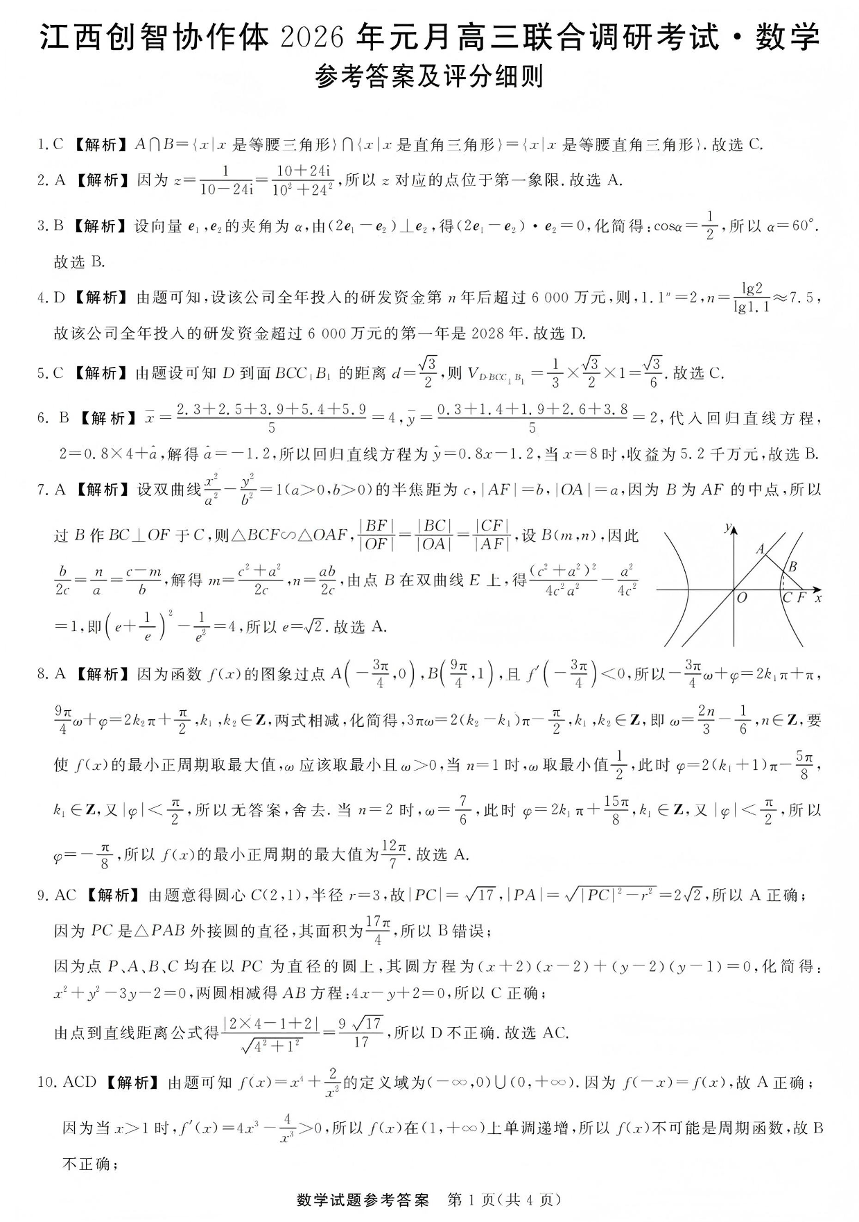 高三数学答案--江西创智协作体2026高三元月联合调研考试