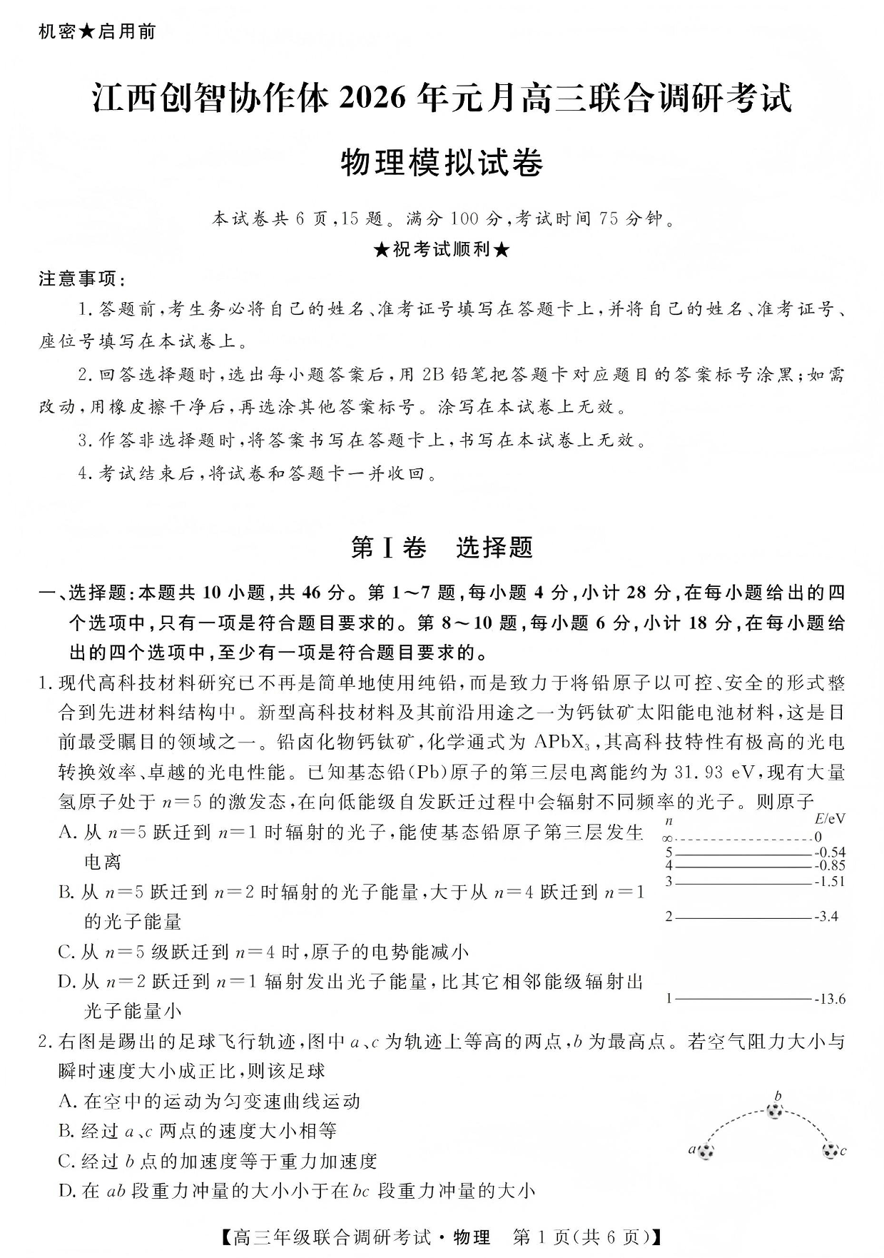 高三物理--江西创智协作体2026高三元月联合调研考试