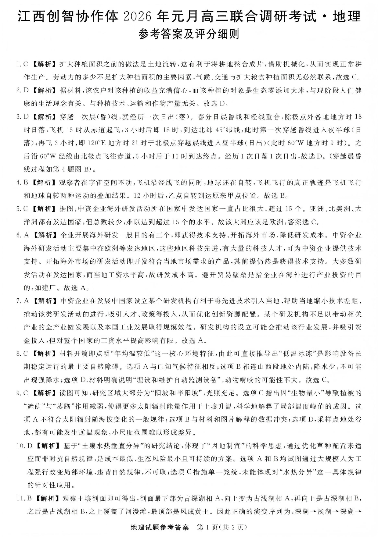 高三地理答案--江西创智协作体2026高三元月联合调研考试
