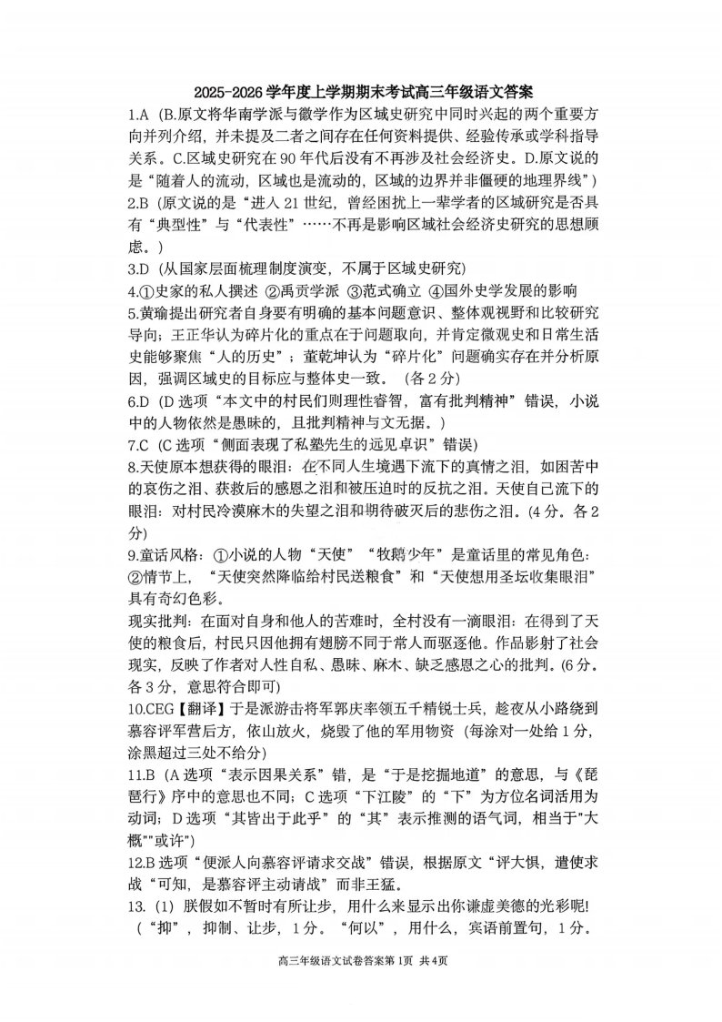 高三语文答案--辽宁省五校联盟2026届高三上学期1月期末考试(东北育才、省实验、大连八中、24中、鞍山一中)
