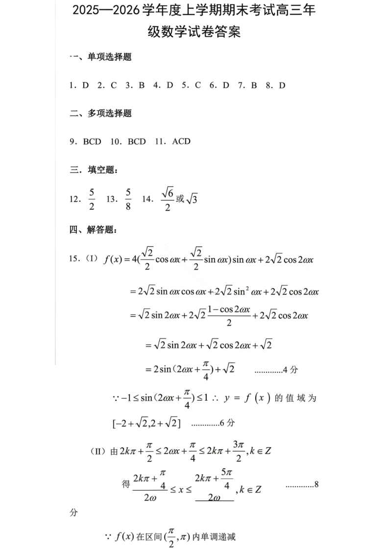 高三数学答案--辽宁省五校联盟2026届高三上学期1月期末考试(东北育才、省实验、大连八中、24中、鞍山一中)