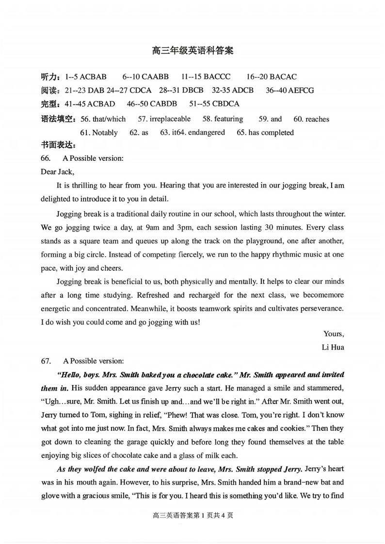 高三英语答案--辽宁省五校联盟2026届高三上学期1月期末考试(东北育才、省实验、大连八中、24中、鞍山一中)