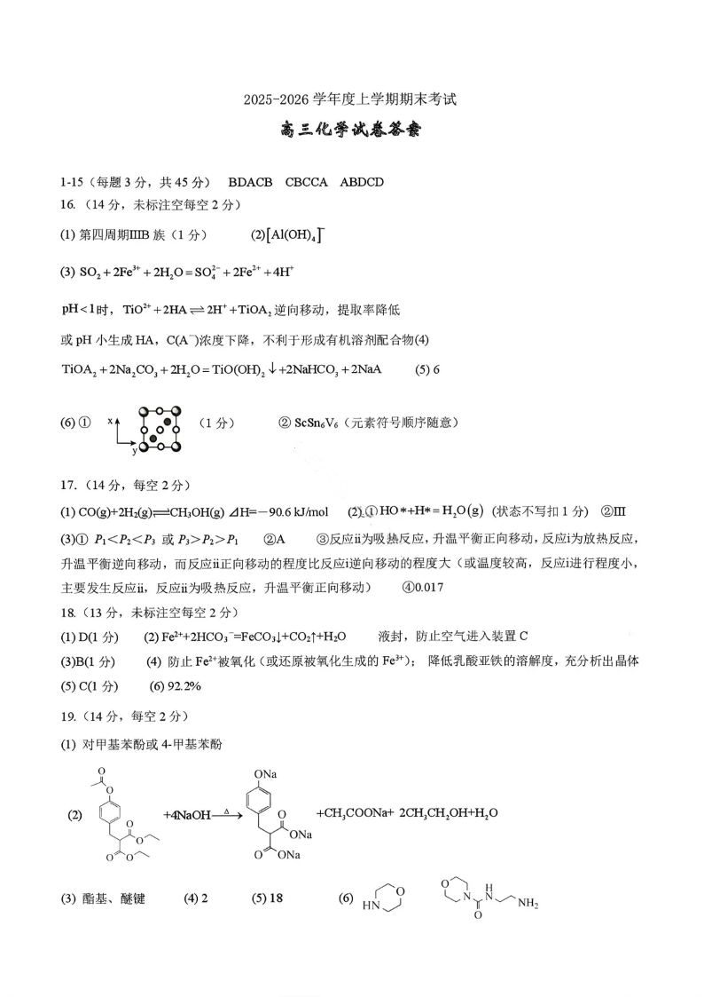 高三化学答案--辽宁省五校联盟2026届高三上学期1月期末考试(东北育才、省实验、大连八中、24中、鞍山一中)