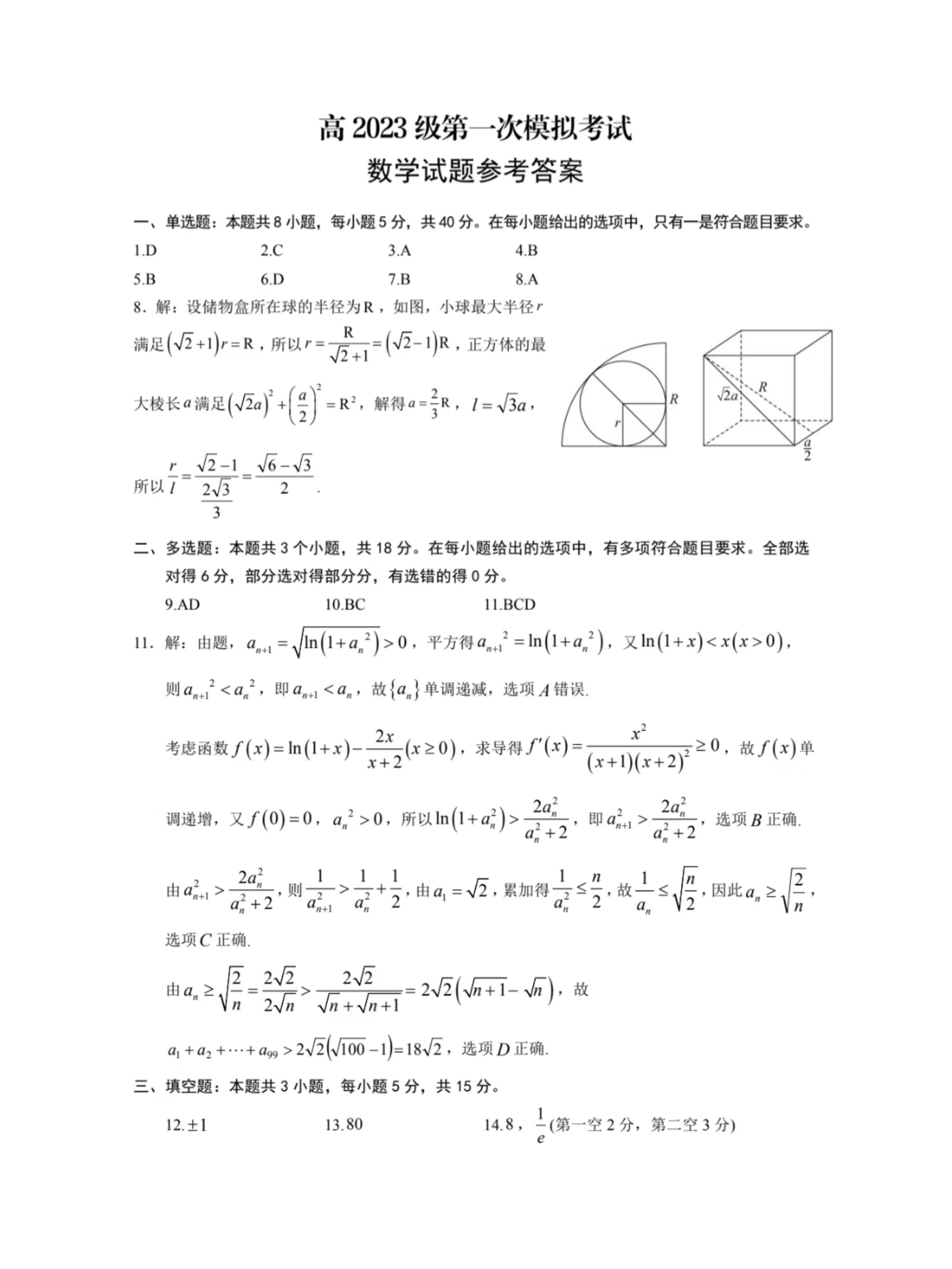 高三数学答案--四川省广安市2026届高三上学期第一次模拟考试(广安一诊)