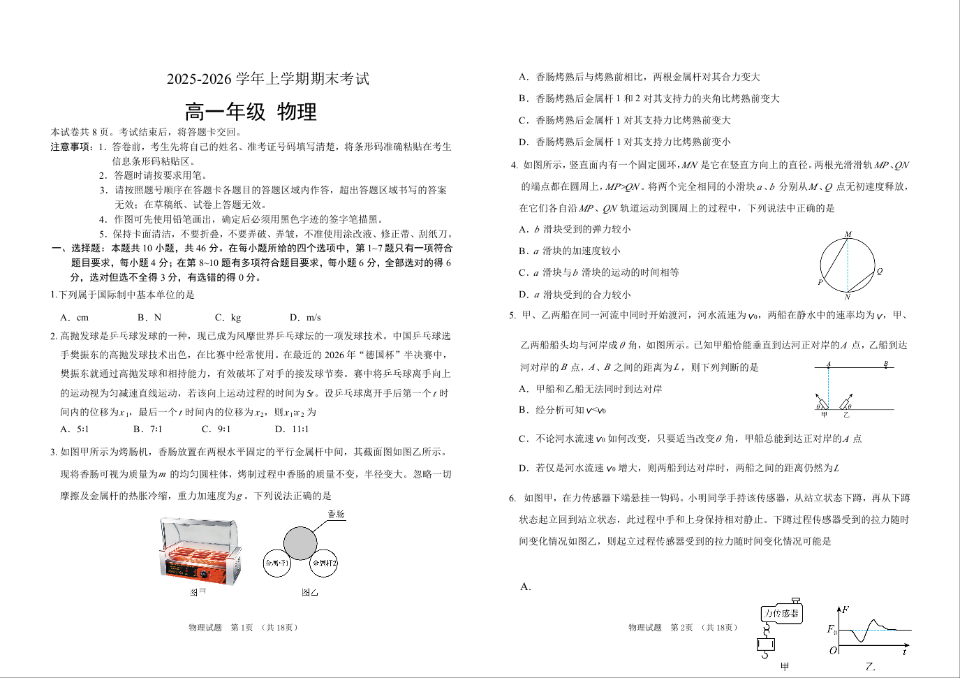 高一物理+答案--吉林省长春外国语学校2025-2026学年高一上学期期末考试
