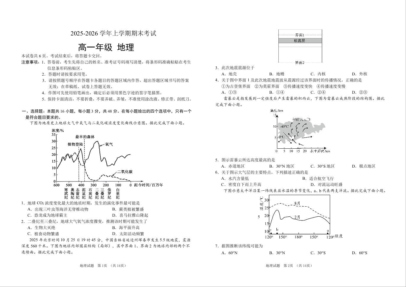 高一地理+答案--吉林省长春外国语学校2025-2026学年高一上学期期末考试