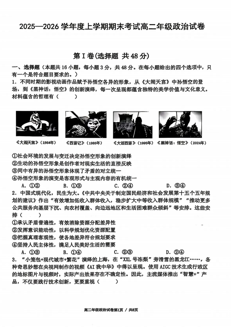 高二政治--辽宁省五校联盟2025-2026学年高二上学期期末考试