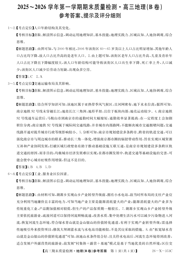 高三地理B答案--安徽省县域合作共享联盟2026届高三上学期1月期末质量检测