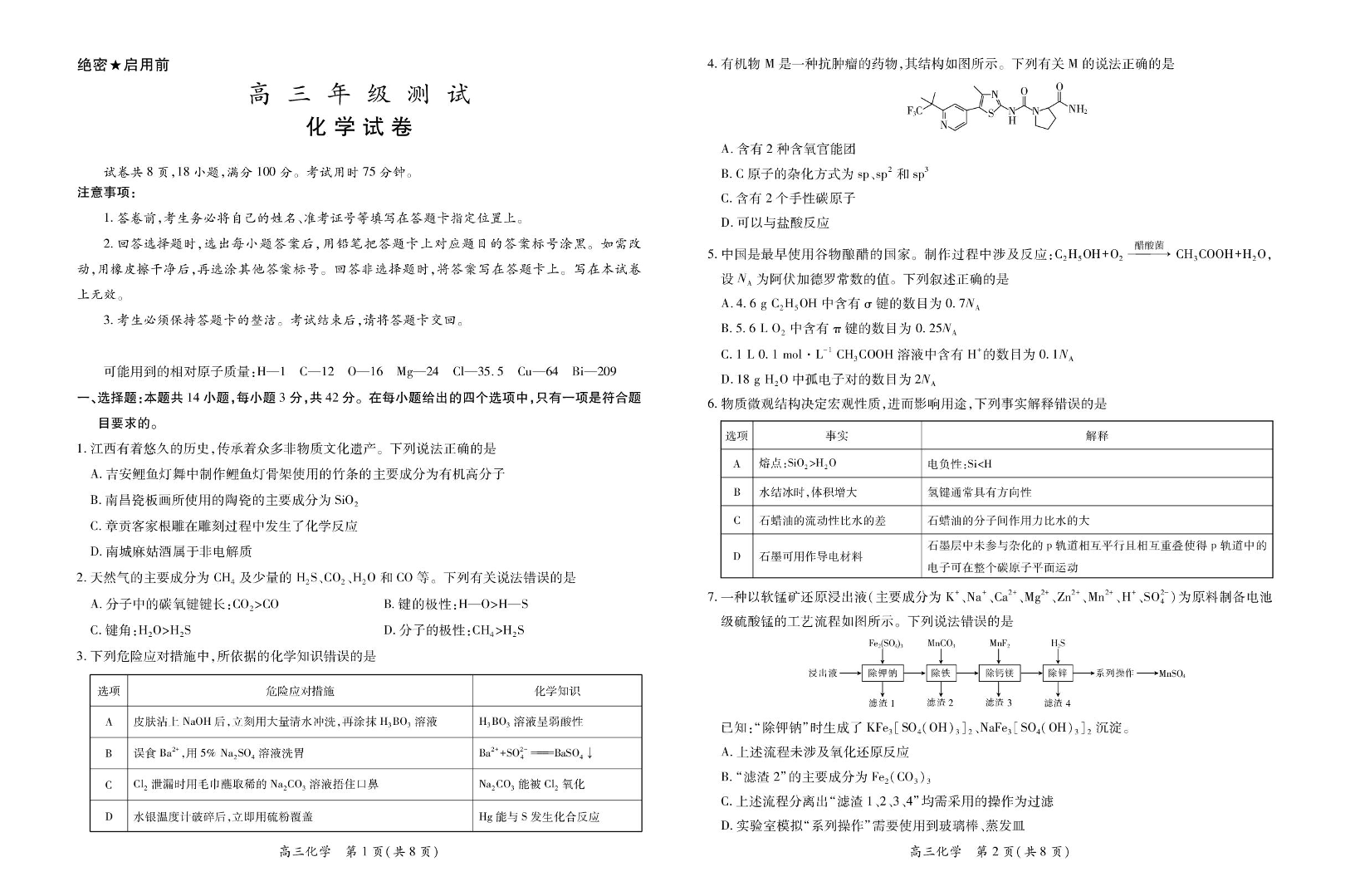 高三化学--江西省上进联考2026届高三上学期1月联考