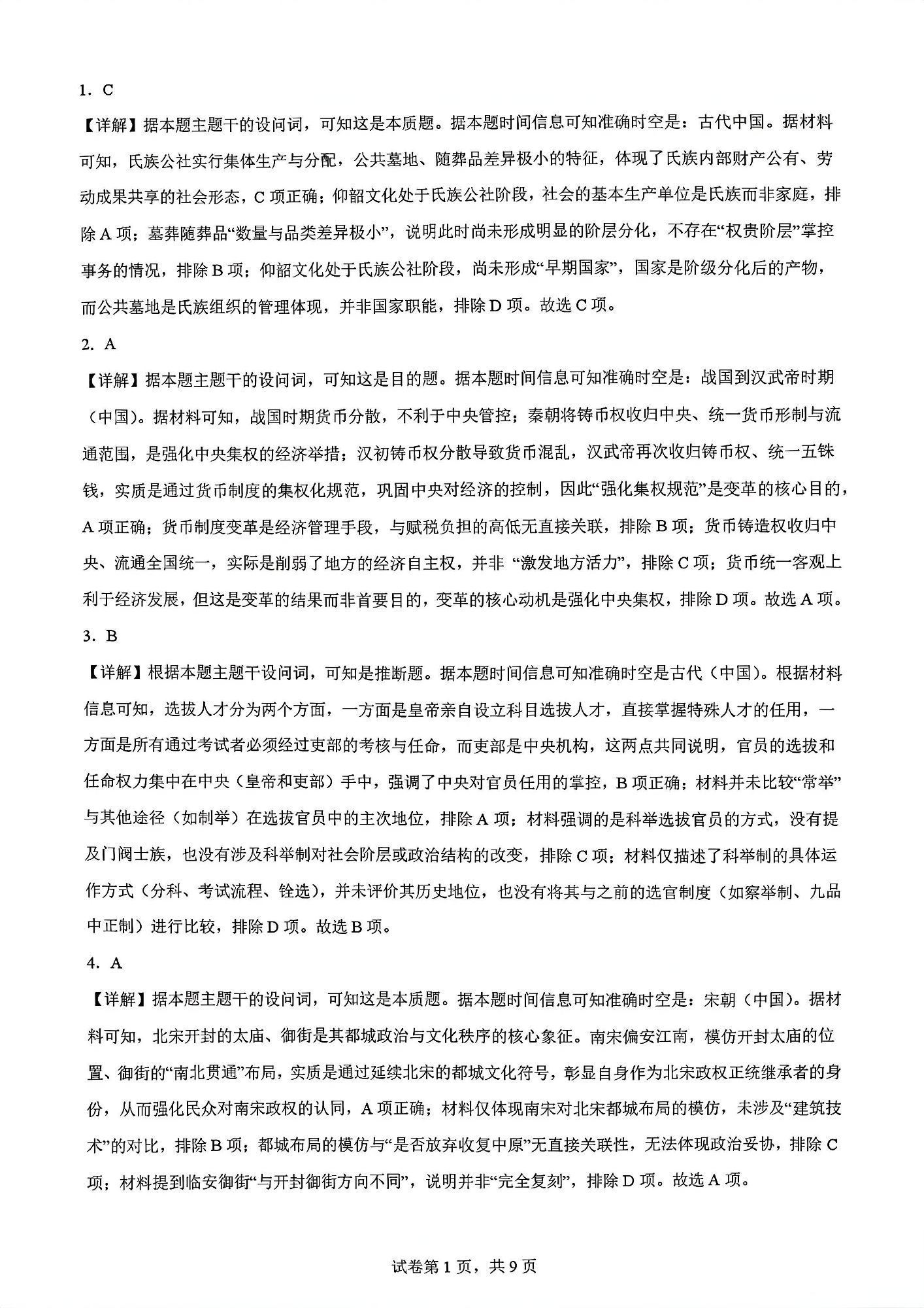 高三历史答案--云南师大附中2026届高三1月高考适应性月考卷(六)