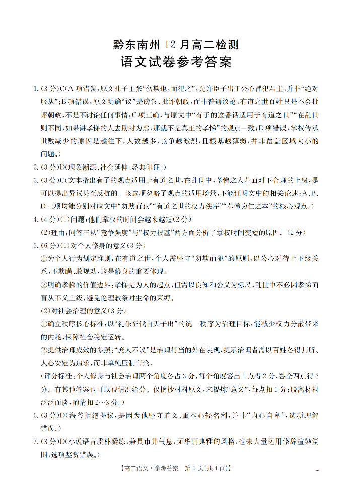 高二语文答案--贵州省黔东南州2025-2026学年高二上学期12月检测试卷
