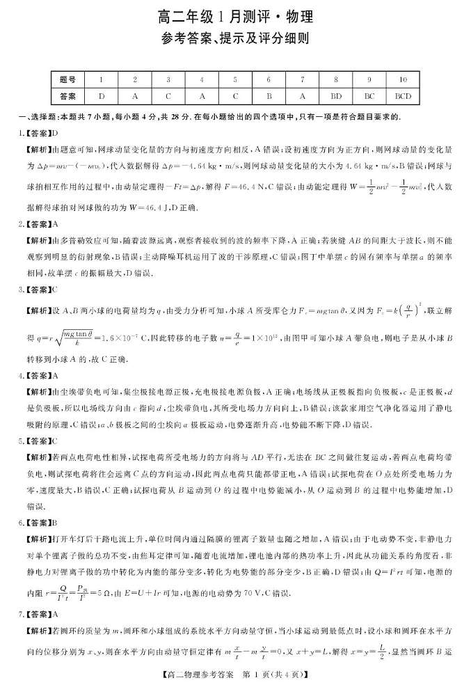 高二物理答案--河南省周口市重点高中2025-2026学年高二上学期1月月考