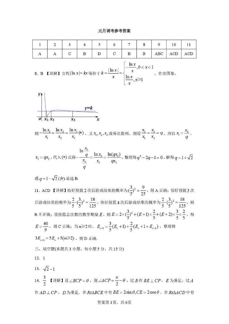 高三数学答案--湖北省宜昌市2026届高三上学期元月调研考试