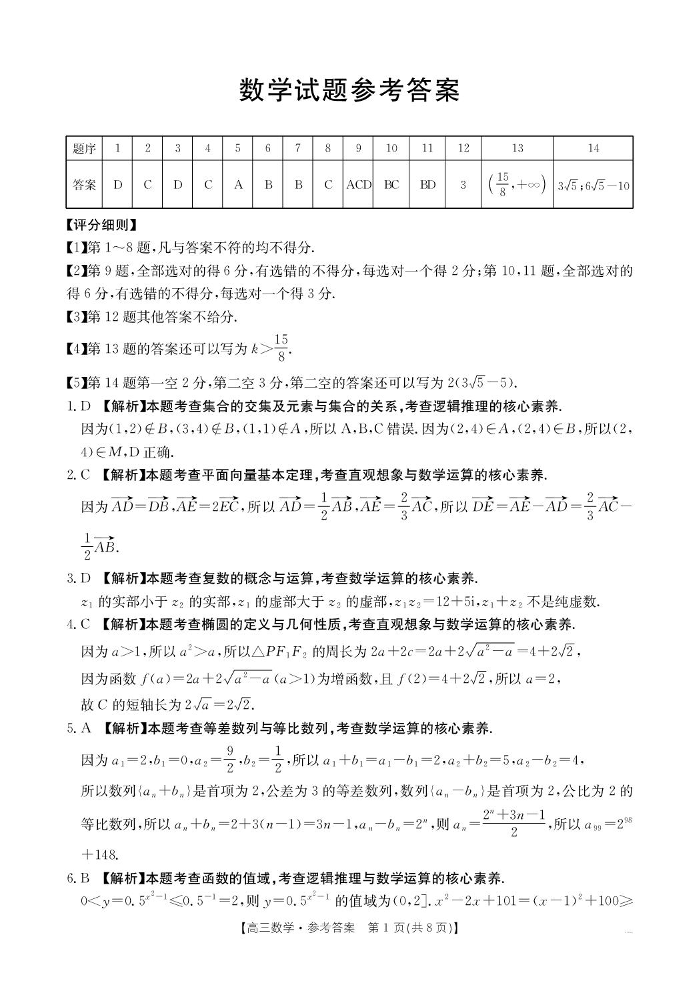 高三数学答案--河北省五个一名校联盟2026届高三上学期1月期末