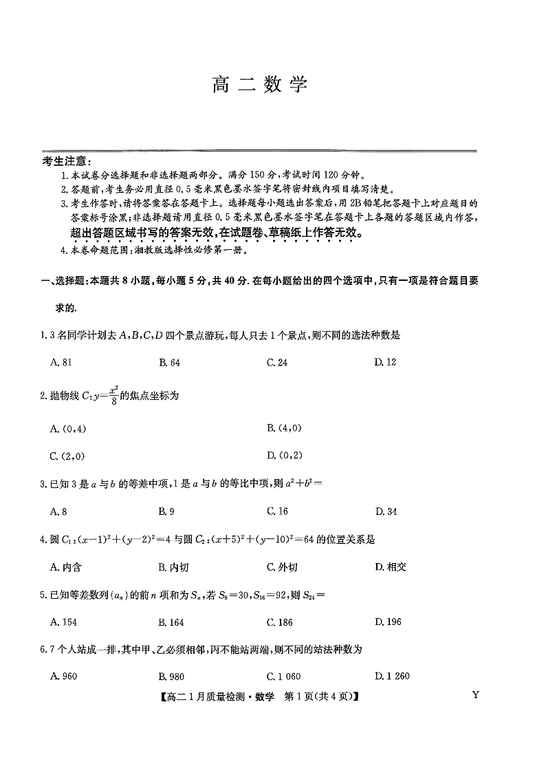 高二数学--甘肃省白银市靖远县第一中学2025-2026学年高二上学期1月期末