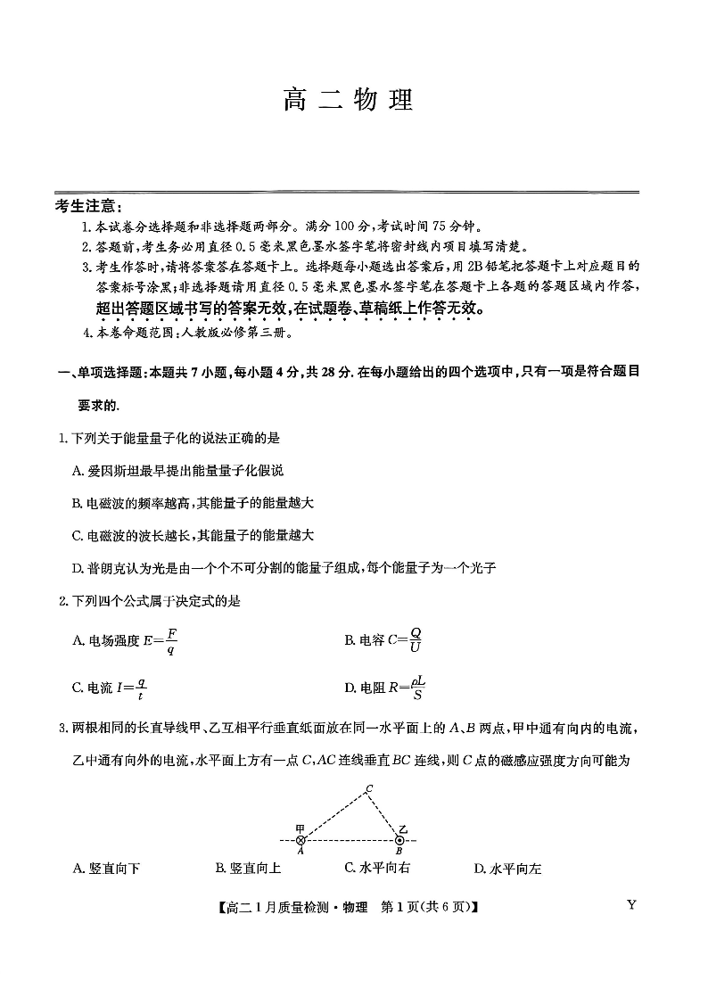 高二物理--甘肃省白银市靖远县第一中学2025-2026学年高二上学期1月期末