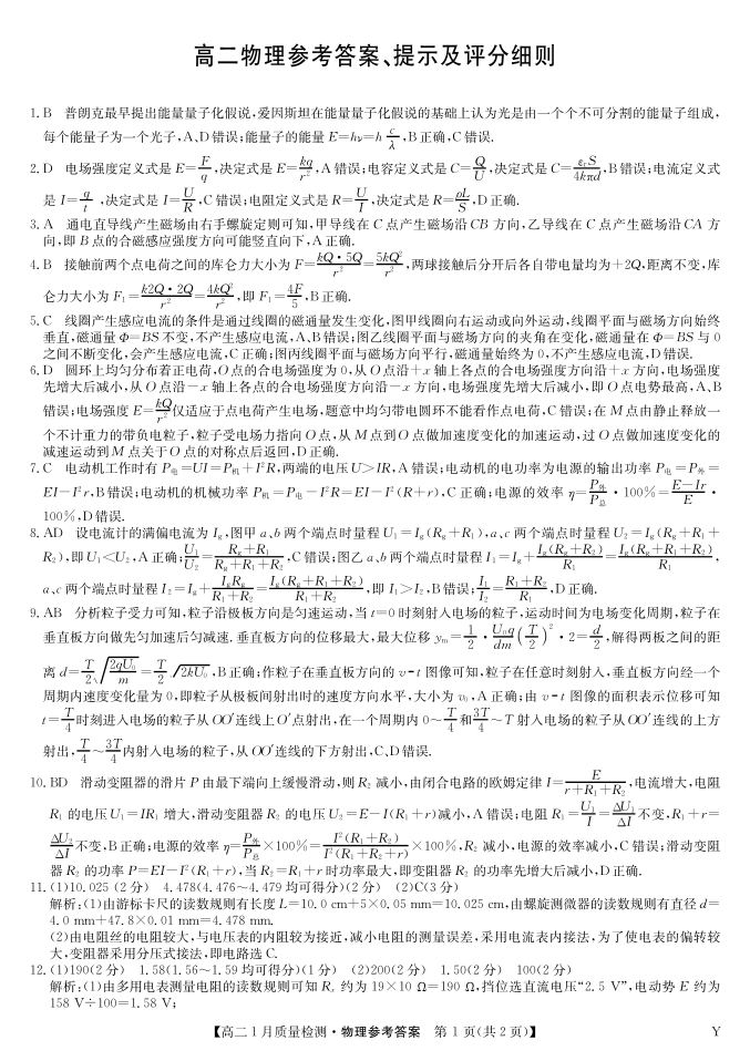 高二物理答案--甘肃省白银市靖远县第一中学2025-2026学年高二上学期1月期末