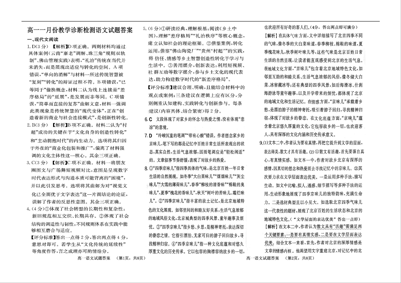 高一语文答案--山东省菏泽市第一中学2025-2026学年高一上学期1月质量检测