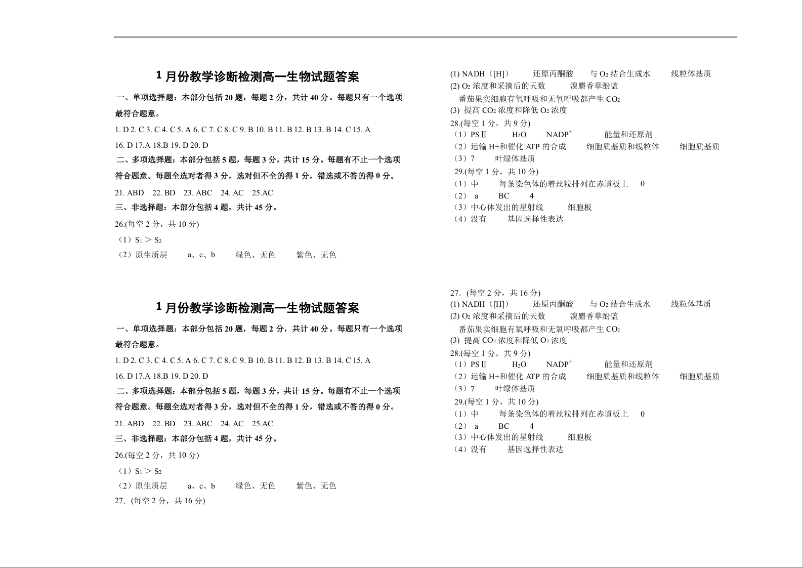 高一生物答案--山东省菏泽市第一中学2025-2026学年高一上学期1月质量检测