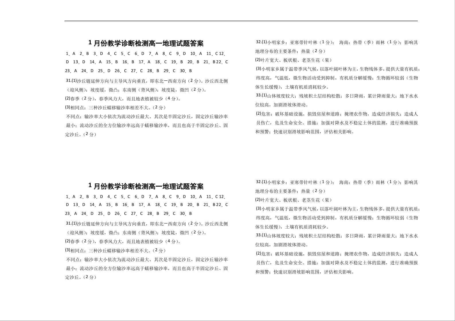高一地理答案--山东省菏泽市第一中学2025-2026学年高一上学期1月质量检测