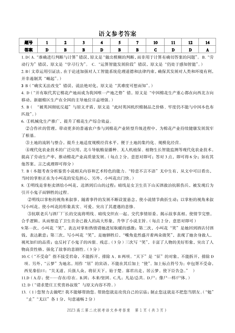 高三语文答案--安徽省省示范高中2023届高三第二次联考